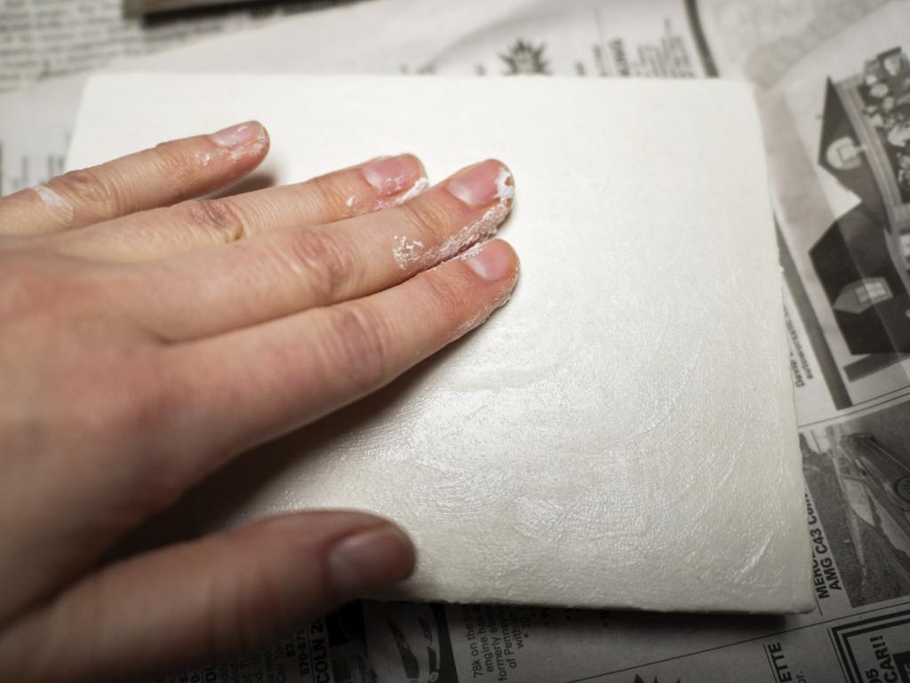Finally, after letting it dry well for a couple of days, the board is sanded with incrementally finer grade sandpapers, to achieve a smooth result.