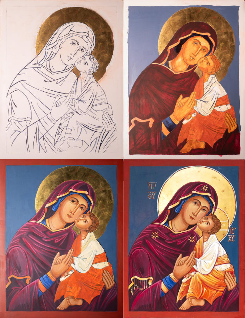 In addition to reading about their lives, it’s important to use existing iconography of the saint as guidelines. Icons that have been accepted by the church and written by church fathers are considered an inspired work from God. Although there are some artistic liberties that can be made, they are in general very minor. We shouldn’t just create something new to suit our fancy with our imagination. That said, iconographers are not necessarily copyists either. So, much prayer and careful considerations must be made when creating a new icon.